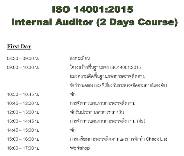 ทางบริษัทฯขออนุญาตประชาสัมพันธ์การอบรม หลักสูตร ISO14001:2015 Internal Auditor โดยมีรายละเอียดการอบรมดังต่อไปนี้