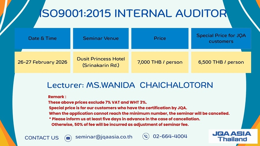 ฝ่ายฝึกอบรม โทร. 02-664-4004 หรือ E-mail: seminar@jqaasia.co.th