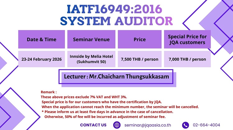ฝ่ายฝึกอบรม โทร. 02-664-4004 หรือ E-mail: seminar@jqaasia.co.th