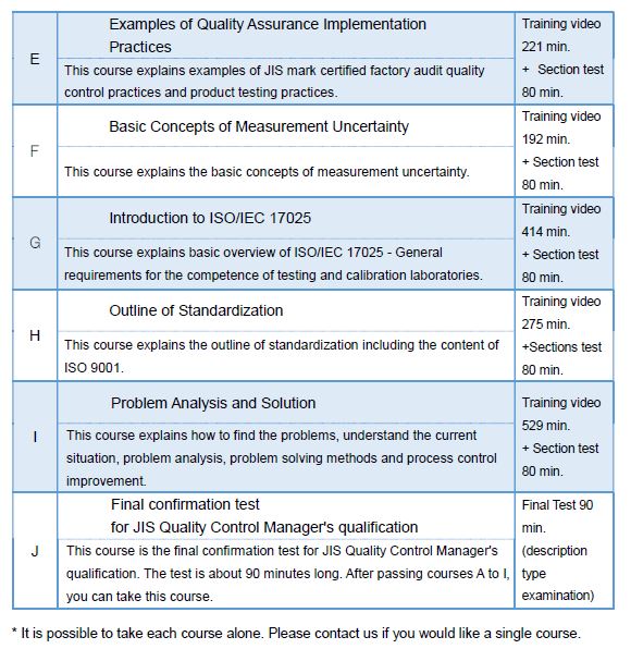 We JQA have launched e-learning service for training new JIS Quality Control Manager (QCM).