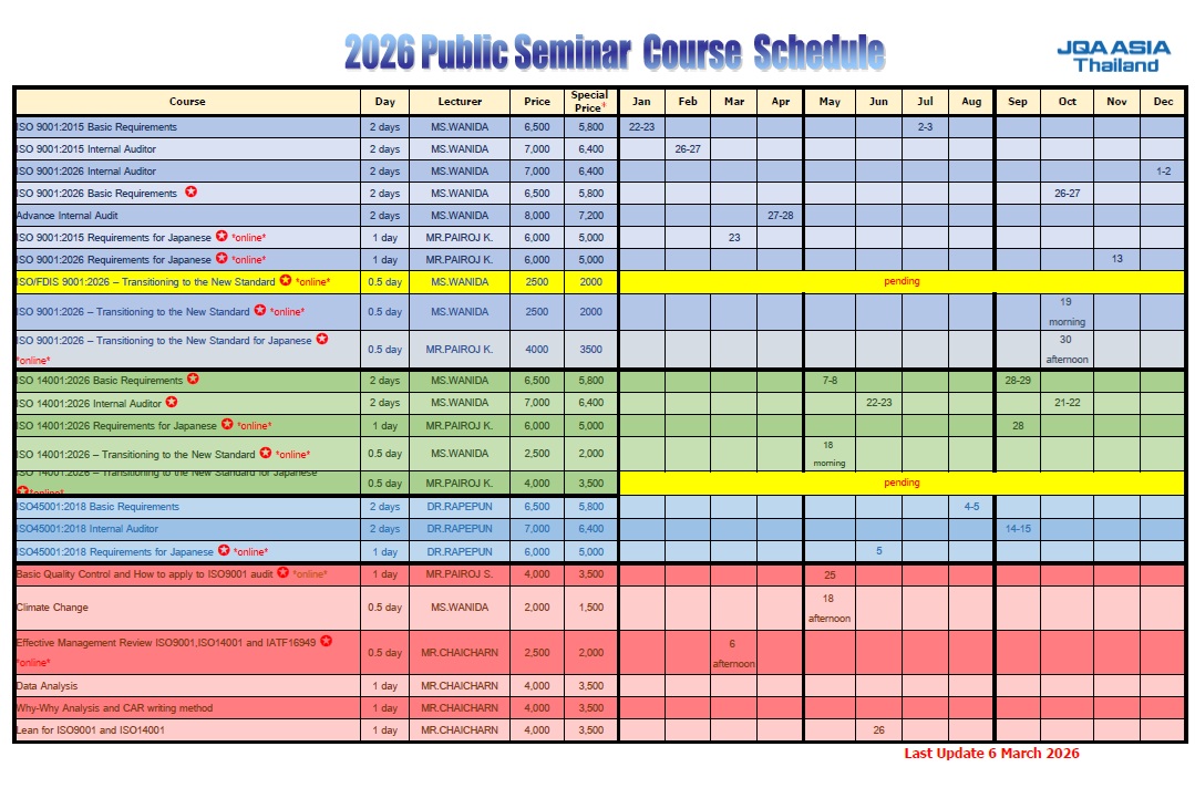 ฝ่ายฝึกอบรม โทร. 02-664-4004 หรือ E-mail: seminar@jqaasia.co.th