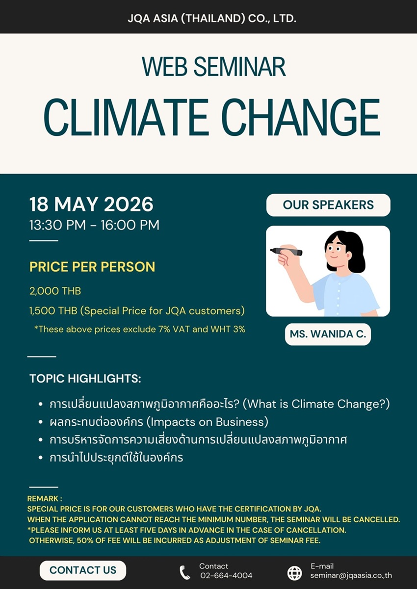 ทางบริษัทฯขออนุญาตประชาสัมพันธ์การอบรม หลักสูตร Climate Change โดยมีรายละเอียดการอบรมดังต่อไปนี้