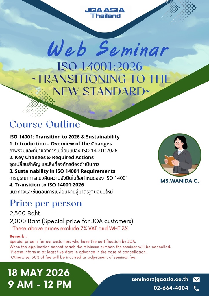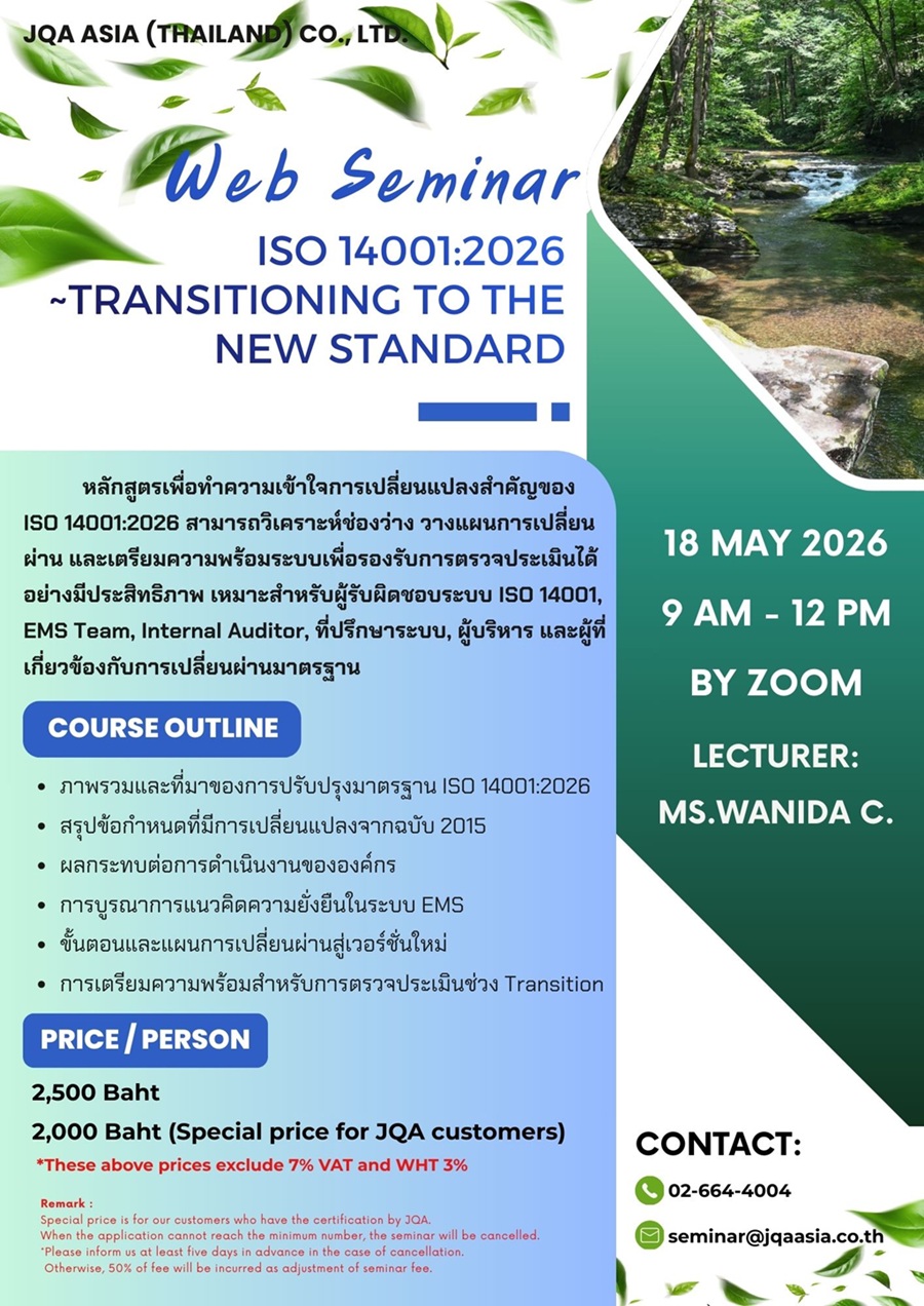 ฝ่ายฝึกอบรม โทร. 02-664-4004 หรือ E-mail: seminar@jqaasia.co.th